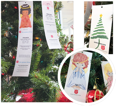 “We find out each family’s needs as they relate to the Angel Tree program,” she says, noting that people schedule appointments to talk with volunteers. “We get the sizes of the children and a wish list of one fun item so people shopping for the program can have guidelines.”