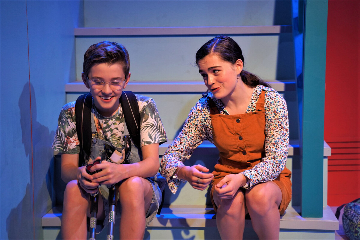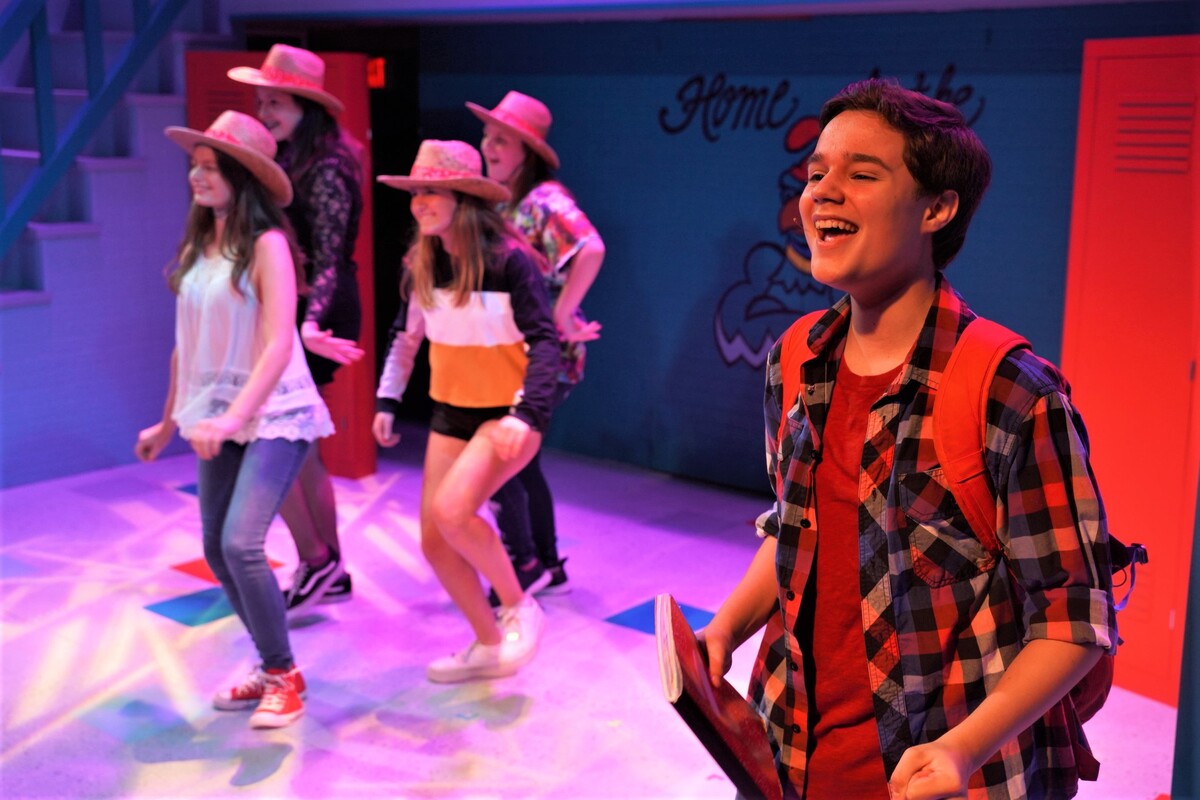 Director Anna Senechal Johnson does a fantastic job of keeping the kids connected onstage and the action moving. My daughter and I were a touch worried that the stage of the Theatre Gym wouldn’t be large enough to hold the cast of 13 and its impressive ensemble numbers, but that did not prove to be the case. The sets are perfectly crafted, and there is room for a few dance numbers that we didn’t expect and the impeccable house band, which is on stage throughout the production. While at its heart, the show and its coming-of-age message are meant for about 12- to 15-year-olds (maybe eleven, depending on the child), older teens and adults will enjoy it thoroughly.
