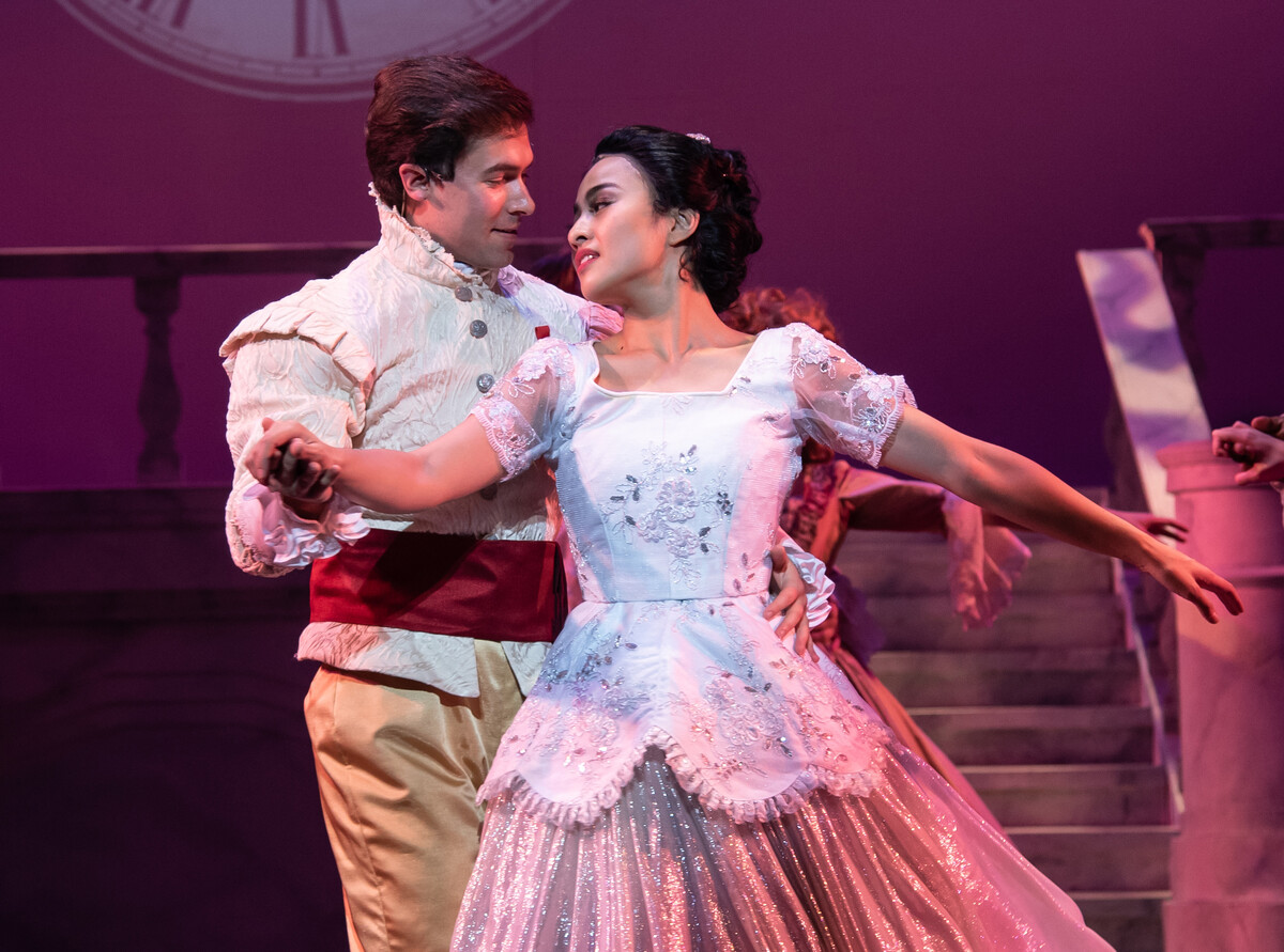 A perfect show for the family, audience members of all ages will experience a fun night complete with ballads and upbeat numbers. Kids (and adults) will enjoy the recurring appearances by a couple of furry creatures (be on the lookout). The seamless magical costume changes with the fairy godmother’s flick of her wand kept the audience entranced. The choreography was on point and only enhanced the talented ensemble’s performance. The mood is cheerful and the musical is laced with comedy that make it fun and joyful and a perfect fit for the holiday season. Just like a certain glass slipper!