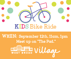 West Broad Village will host a morning of biking fun for kids and families to welcome Richmond 2015! Saturday, September 12, bring your bike and meet on “The Pad” (the…