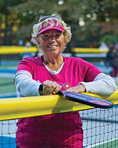 “I want people to learn this game,” she says. “I’ve had people tell me how life-changing it is. I’ve had people tell me they’ve lost a loved one, and [pickleball] gave them a place to be with people who cared about them. It’s been a mission for me. Everybody’s invited. We are inclusive of every level and type of person. We just get together and have a great time.”