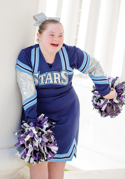 Her mom may have been anxious about her daughter’s stage debut, but Emily – who has Down syndrome – wasn’t. “She knows no fear,” her mom says. “She is very much an extrovert. She’s very social. She loves the attention. ”Being on a cheerleading squad has given Emily a great deal of confidence. “That’s the biggest thing,” her mom says about Emily’s attitude. “She’s also learned patience – how to wait, cheer others on, and be supportive. She knows she is not always center stage. She knows she has to work as part of a team.”Having Emily on the squad has been a learning experience for her mother as well. “I’ve gained a full heart from knowing my child can
