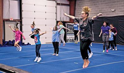 She has six coaches working with her who provide assistance on the floor. “Some of the coaches spot the girls and provide guidance, and some work with the girls individually,” she says.