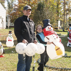 Matthew Satterwhite and his wife, April, of Hanover County began decorating their home at 7396 Kelshire Trace in Mechanicsville for their daughter’s enjoyment. The tradition started innocently six years ago. “When my daughter was two, we walked into a Rite Aid and saw a [yard decoration of a] snowman and his wife pulling a kid on a sled. I thought that would look perfect in our yard.”