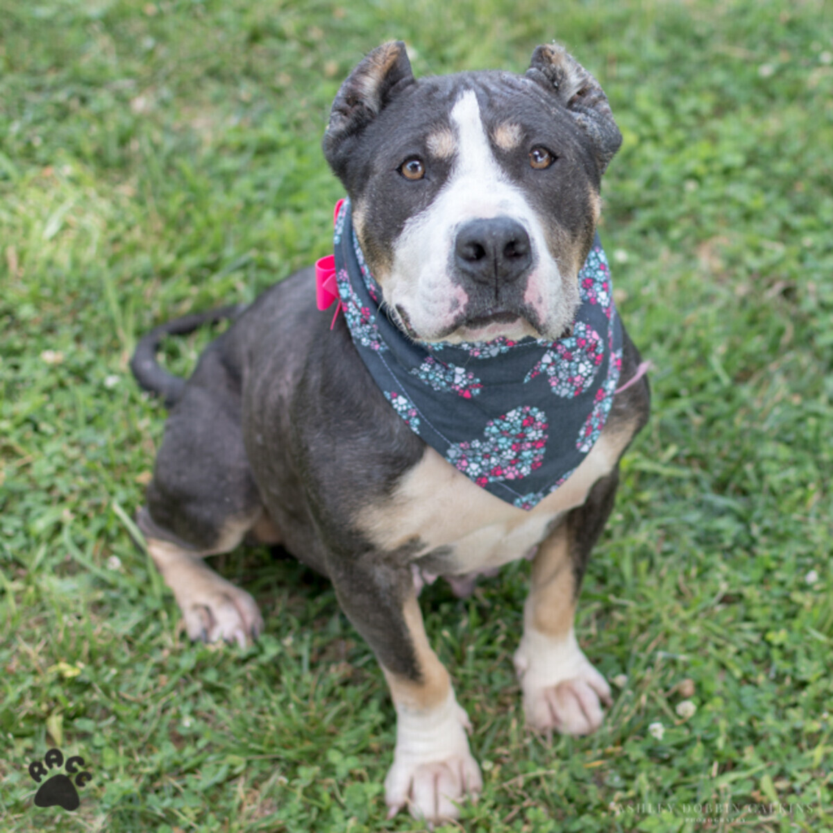 Peters narrowed it down to three shelter dogs, one of which was Blue Belle, a 55-pound American bulldog and pit bull mix that has been at RACC since May 25. “We found her running loose off Richmond-Henrico Turnpike,” Peters says. “She had some health issues that we treated.”