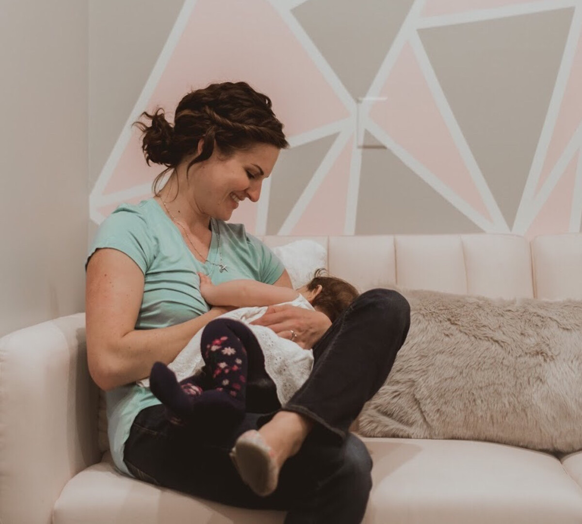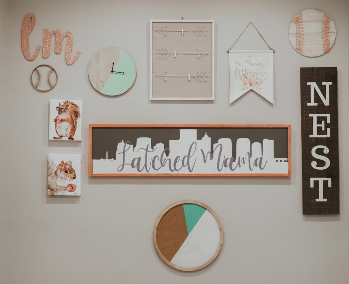 This February was the right time for her to approach the Flying Squirrels with her idea for the Latched Mama Nursing Nest. “I explained why this type of area was important,” she says, noting she breastfed halfway through her meeting with team management. “I originally asked for a storage room, but the Squirrels found a good place in the back of the store.”