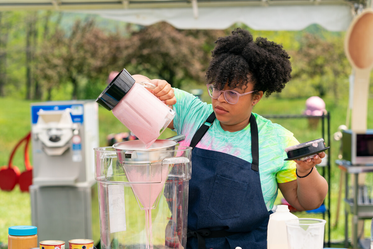 “You have three hours to make the ice cream. In a typical world, you have one to three days because of the process so you can envelope all the flavors,” she says. “For me, the minute I was given the challenge, the gears started moving. By the time I started, I had an idea of what I was making.”