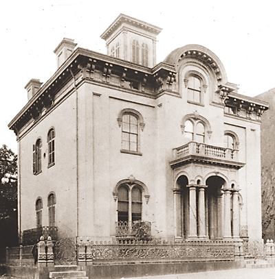 The Italianate-style home of three floors was finished with brown stucco and had an entry porch with a second-floor balcony and balustrade, and a roof-top cupola. In the beginning, rooms were rented to other organizations, providing a revenue stream to help offset the purchase cost.