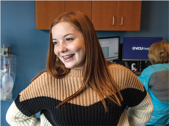 Anna was diagnosed with cystic fibrosis when she was only six days old. “We knew it was a possibility based on prenatal testing,” says Eddie, “but we knew nothing about cystic fibrosis.” A child can be born with cystic fibrosis if each parent is a carrier, meaning they have a particular gene mutation. The chance that two carriers will have a child with cystic fibrosis is 25 percent. Anna’s parents quickly got a crash course in the disease. They took Anna to doctors’ appointments at Children’s Hospital of Richmond at VCU once a week initially and have taken her to regular visits every three months since her first birthday.