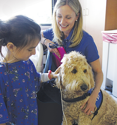 Patients who come in for treatment after a dog bite also benefit from therapy dog visits. “The DOC teams are incredible. They will have the dog lie down so it’s seen as less threatening,” Garrett says. “We have had a number of families who commented they didn’t think their child would be able to play with a dog again, and after therapy dog visits, they are playing with the dog. That is remarkable to see.”