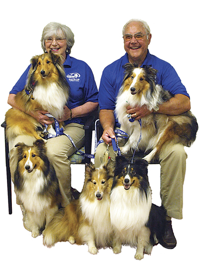 The Robertson’s dogs are all shelties, but they have different personalities and it’s important to recognize the situations that suit them the best. “We take different dogs on different visits,” Janie says. “One dog does a lot of tricks so that dog does kid visits. A couple of them are very calm and will curl up with the patient.”