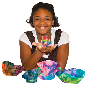 3. Place the decorated coffee filter over the cup and secure it with a rubber band to create an organic flared shape – much like the sculptures from Chihuly’s Macchia forms.