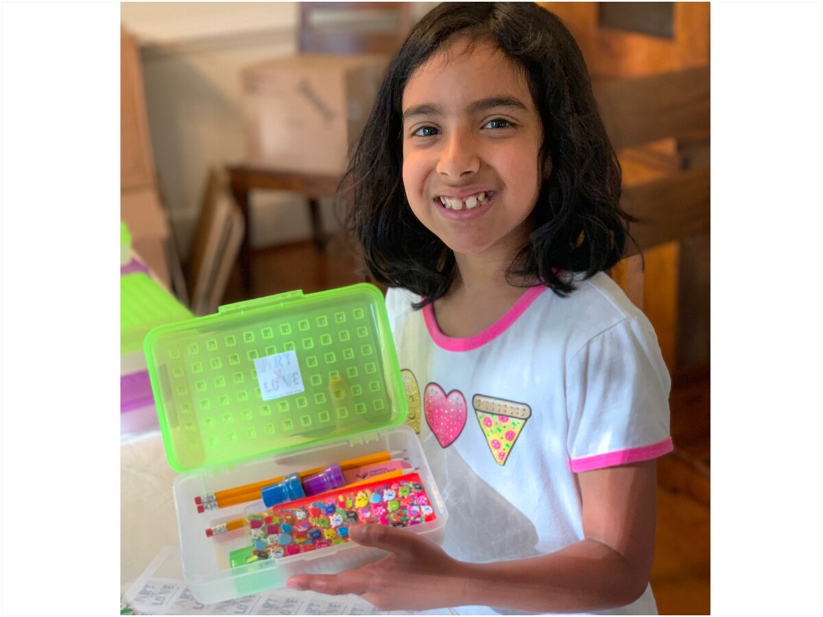Ava, now ten, started the nonprofit with her family when she was nine. “Before we started it, I didn’t realize how many kids didn’t have art supplies and homes and now that I realize that it makes me want to help more,” she says.