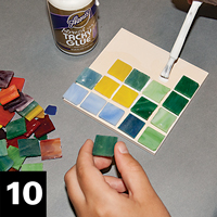10. Older artists can ask the local hardware store for broken bits and pieces of tiles. Glue down pieces of ceramic tile to decorate seasonal coasters.