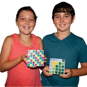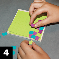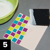 4. Position colored squares on a paper grid on ceramic tiles in the seasonal pattern or design of your choice. When you have settled on your design or pattern, carefully lift the grid design off and set aside.