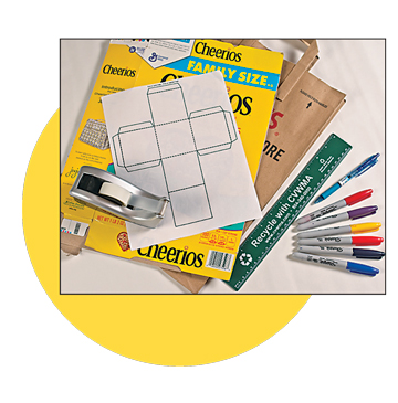 1. Cut open the cereal box or paper bag and spread flat on table.