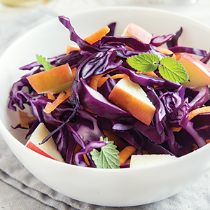In a large bowl, whisk together olive oil, mustard, honey, and lime juice to make the dressing. Next, toss chopped cabbage, radish, and apples into the bowl with your dressing. Feel free to use your hands to thoroughly toss the ingredients. Add salt and pepper to taste. Cover, and chill in the fridge for an hour. Mix in the chopped cilantro right before serving. This recipe is best served and eaten within a day.