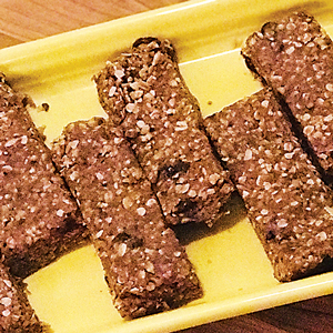 In a smaller mixing bowl, whisk together the almond butter, honey, and vanilla extract until well blended. Pour the liquid ingredients into the dry ingredients. Using your hands or large wooden spoon, mix all your ingredients together until everything is evenly combined and no dry oats remain. Transfer the mixture to your prepared pan. Arrange the mixture fairly evenly in the baker. Cover and refrigerate for at least one hour, or preferably overnight. When you are ready to slice, lift the single piece out of the baker by grabbing edges of the parchment paper. Use a sharp knife to slice the bars into 1-inch strips, then slice them in half through the middle. Bars keep well for a couple of days at room temperature, but you can store bars in a freezer-safe bag in the freezer for best flavor.