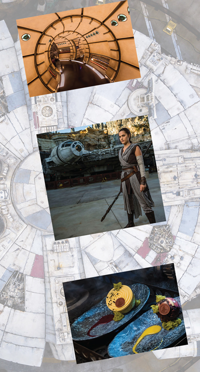Imagineer Chad Stachnik, principal project manager for Walt Disney Imagineering, has been working on Galaxy’s Edge for about five years. “We wanted to create a place to bring all of the [Star Wars] movies to life… take it from the screen to the ground,” he says. “This is new to the Star Wars storyline and includes many different stories.”