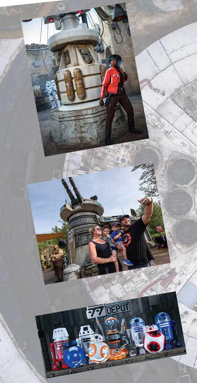 Imagineer Chad Stachnik, principal project manager for Walt Disney Imagineering, has been working on Galaxy’s Edge for about five years. “We wanted to create a place to bring all of the [Star Wars] movies to life… take it from the screen to the ground,” he says. “This is new to the Star Wars storyline and includes many different stories.”