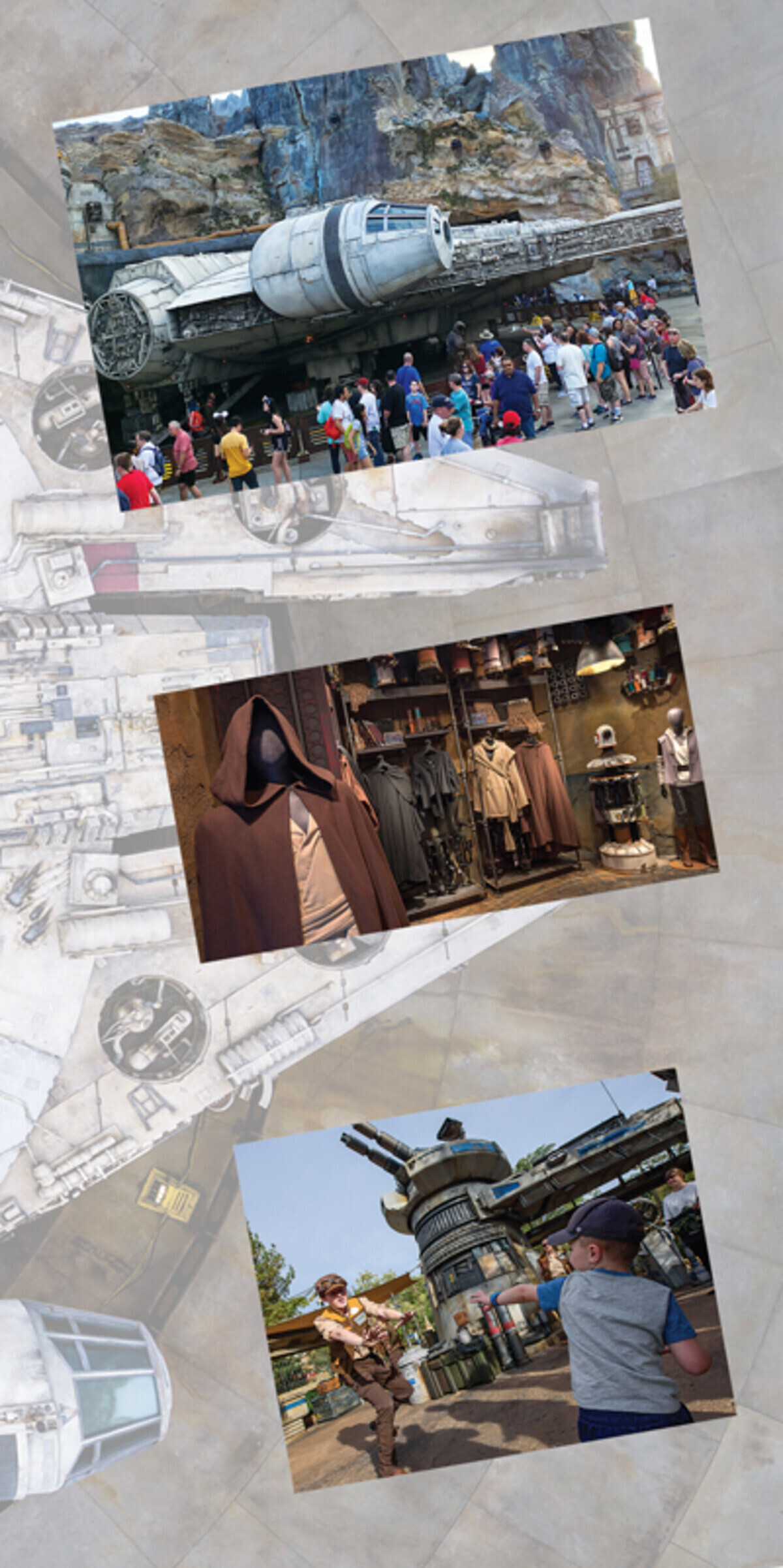 Star Wars: Galaxy’s Edge was created with more than 200,000 square feet of rockwork, 7,000 props, and approximately 260,000 square feet of plaster. The ancient-looking spires dotting the landscape measure up to 130 feet high.
