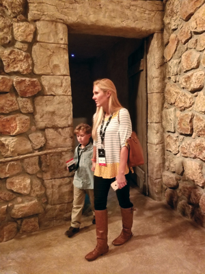 Courageous Pages, the children’s play-and-learn space, relies less on high-tech and more on high-touch. Carnival-style games, reminiscent of skee ball and beanbag toss, spotlight biblical heroes. David versus Goliath, Daniel of the lions’ den, and Queen Esther teach triumph through courage, backed by scripture. Some games use teamwork, others competition, so everyone – including parents and grandparents – can share the fun. A wall of open-the-door factoids recalls stories of children in the Bible. Kids can burn off extra energy playing on the indoor jungle gym or trying to keep up with the ever-moving marine life in the Walk on Water illusion. Steps away, a toddler’s nook has Noah’s Ark as its centerpiece. As little ones arrange mini animals in cubbies and match them in pairs, tweens can stay busy with an interactive scavenger hunt. Also in this area, keep the camera ready at Samson Pillars, where visitors of every age can show off their super-power strength.