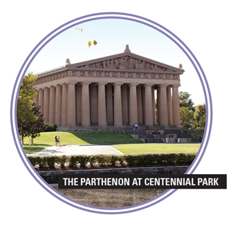 Called the Parthenon, the Grecians completed a temple in 438 B.C. to honor their beloved Athena. In 1897, the Nashvillians created a full-size replica of the Parthenon in Centennial Park for Tennessee’s Centennial Exposition.