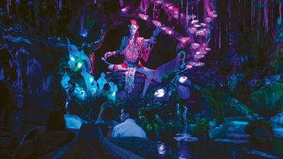The imagineers used a host of different technologies to create the ride. “We methodically went through and chose elements that would make your body feel like you were on a banshee – elements that would make you say, ‘I was there! I was flying in Pandora!’” Lester says.