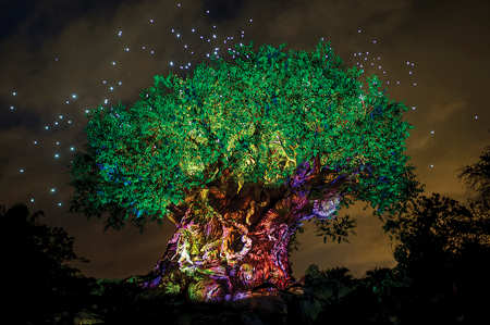 Many plants are bioluminescent with internal lighting or material that makes them glow. They combine nicely with the more than 500 trees and nearly 10,000 shrubs planted by the Disney horticulture team across the Pandoran landscape.