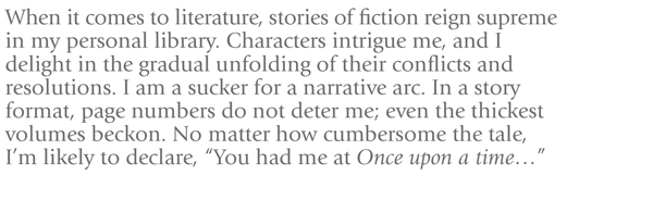Passing on this love of fiction has been a highlight of motherhood. From lap-sitters listening to No More Jumping on the Bed to car passengers clutching the latest Magic Treehouse installment, stories have shaped my children. Their lives bear the imprints of Harry Potter and Percy Jackson and their enduring companionship. Even today, my teenage kids lose themselves in worthy tales.
