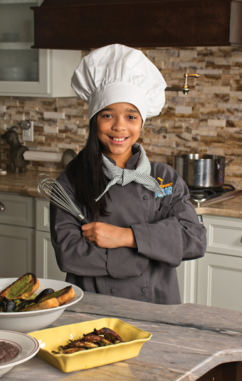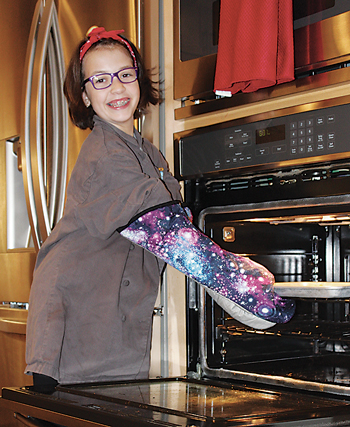 In the meantime, Claire is pursuing another dream: creating and selling products that help kids in the kitchen. She recently developed oven mitts that easily fit the hand of a child or small adult and reach above the elbow. Made from materials used in firefighting gear, the No-Fear Oven Sleeves help reduce the fear parents might have when their kids are working with heat. “Nothing like this exists,” says Claire’s mom, Christina. “If it had, I would have bought it when Claire first started cooking.”