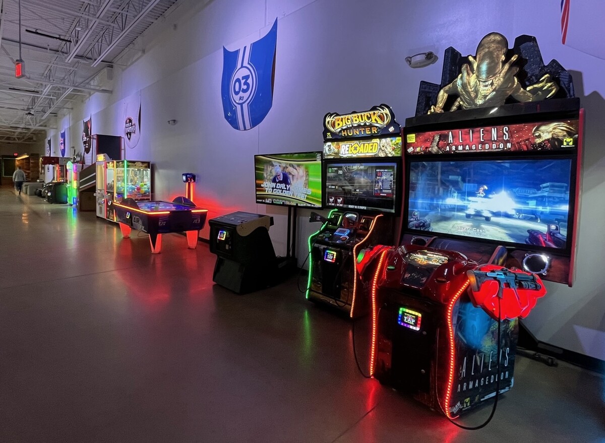 We didn’t partake this time, but we did check out the fun trackside gaming area, which includes rows of video arcade games, pool tables, air hockey, basketball hoops, and even massage chairs.
